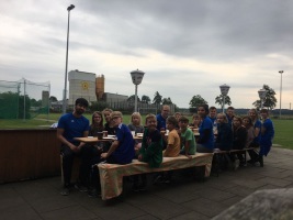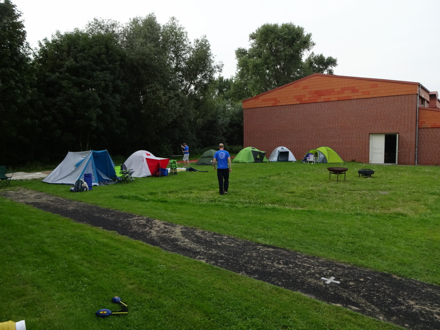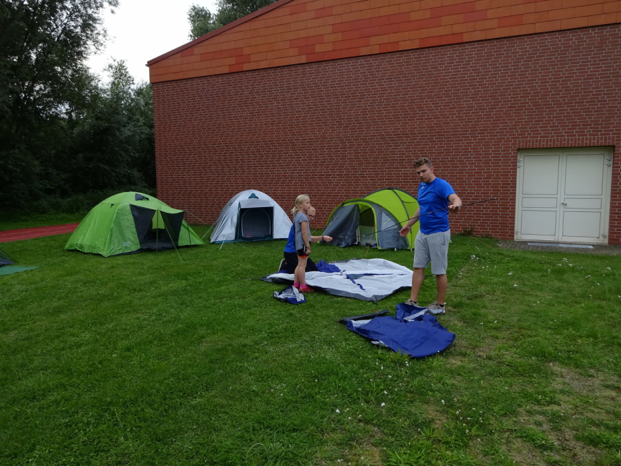 Am Freitag (25.08.) ging’s ab 16 Uhr los. Gemeinsam wurden zwischen Kugelstoß- und Diskusring sowie der Weitsprunganlage Zelte aufgebaut.