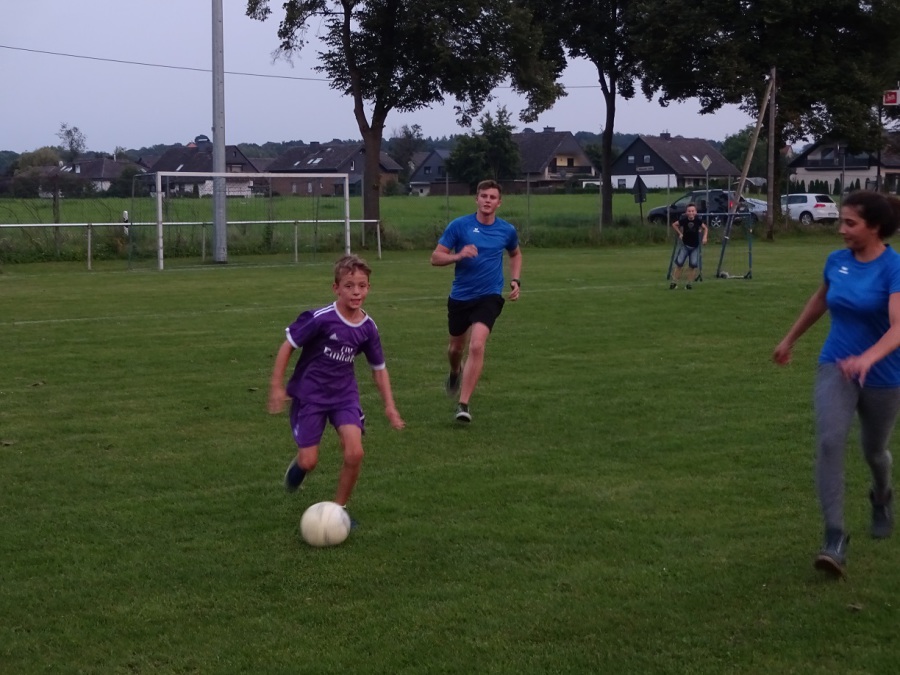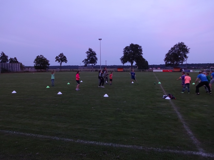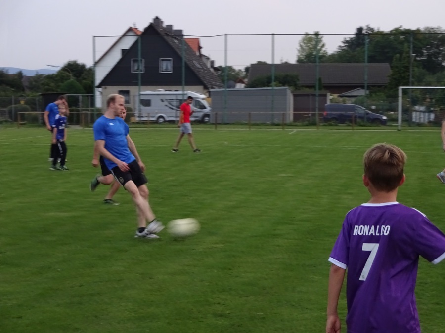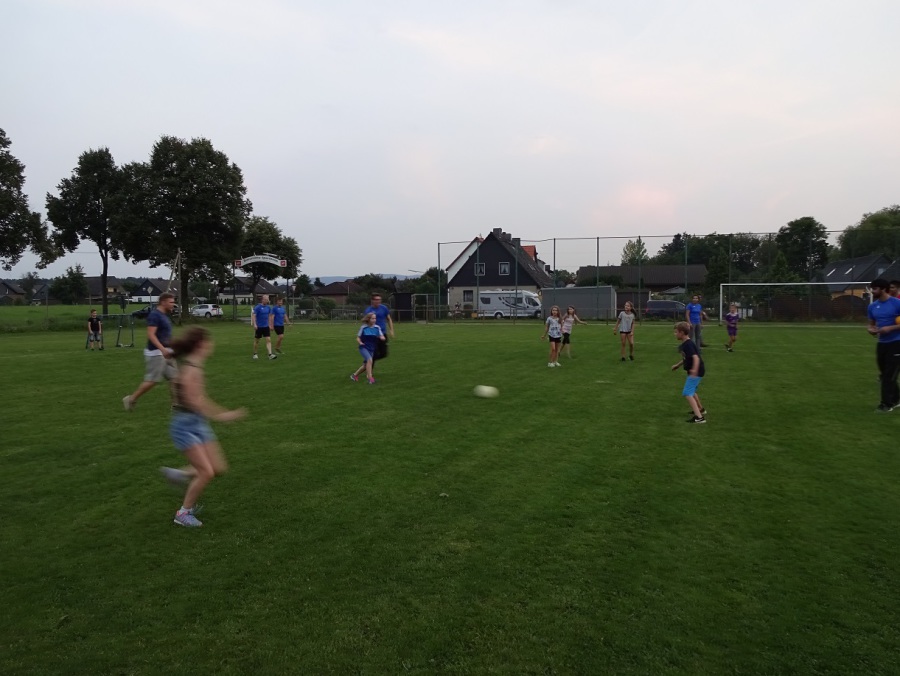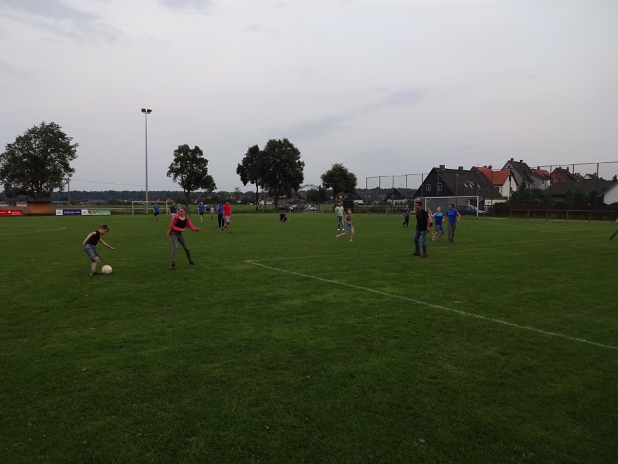 In der Dämmerung gab es dann ein kleines Fußball-Match. Man hätte meinen sollen, die Kinder wären inzwischen genug gelaufen – aber nein: Kaum war der Ball auf dem Spielfeld, wurde schon wieder losgerannt. Böse Fouls und Verletze gab es zum Glück nicht. Die ein oder andere Hose dürfte aber ein paar Flecken bekommen haben..