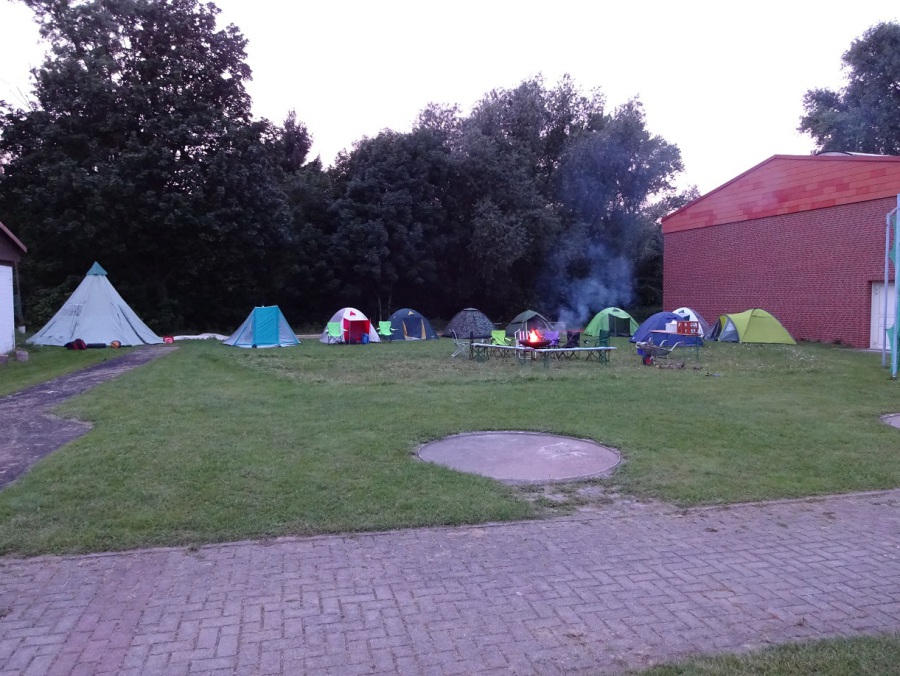 Danach spielten einige Kinder im Dunkeln Fangen, andere kehrten in die Halle zurück und wieder einige wärmten sich bis spät in die Nacht am Feuer. Erst gegen 2 Uhr morgens kehrte langsam Ruhe ein und der ein oder andere fand eine Mütze Schlaf in seinem Zelt.