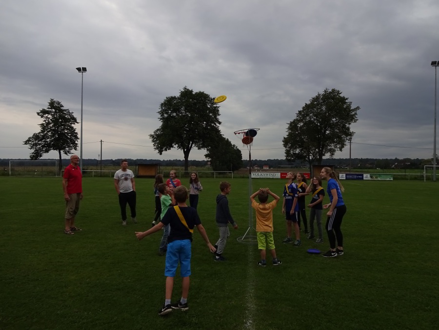 Am Vormittag gab es Besuch von Iris und Uli, die die Kinder (und auch einige der „Großen“) mit Frisbee-Basketball, Biathlon „mal anders“ und einer Sprint-Sprung-Staffel zu sportlichen Höchstleistungen herausforderten.