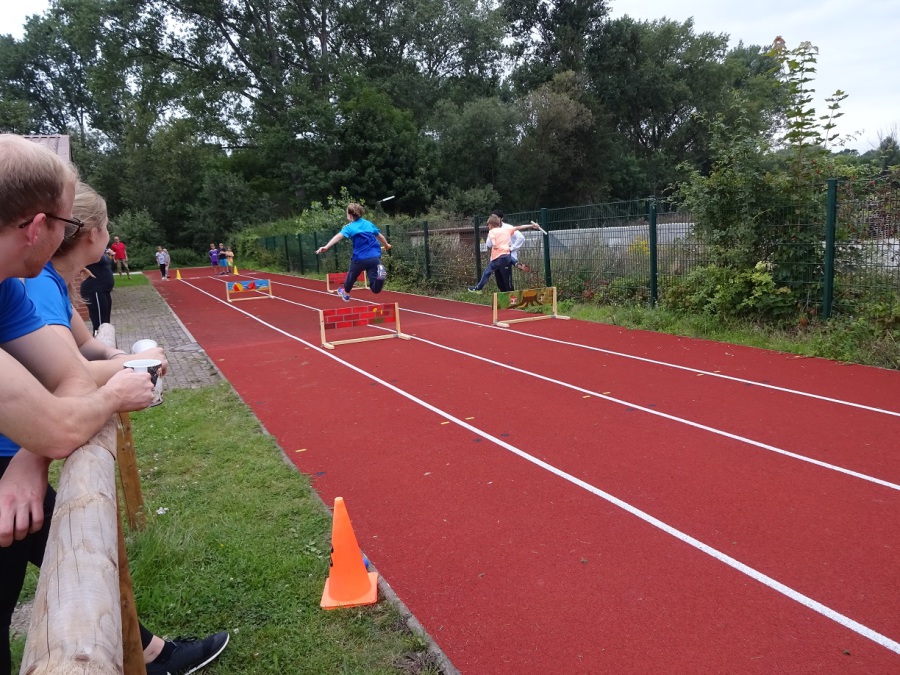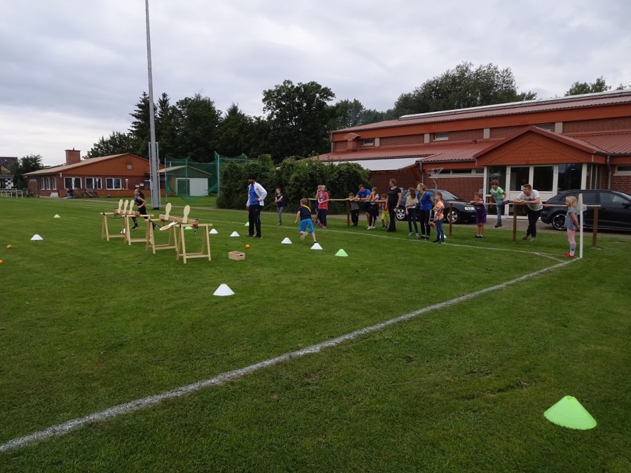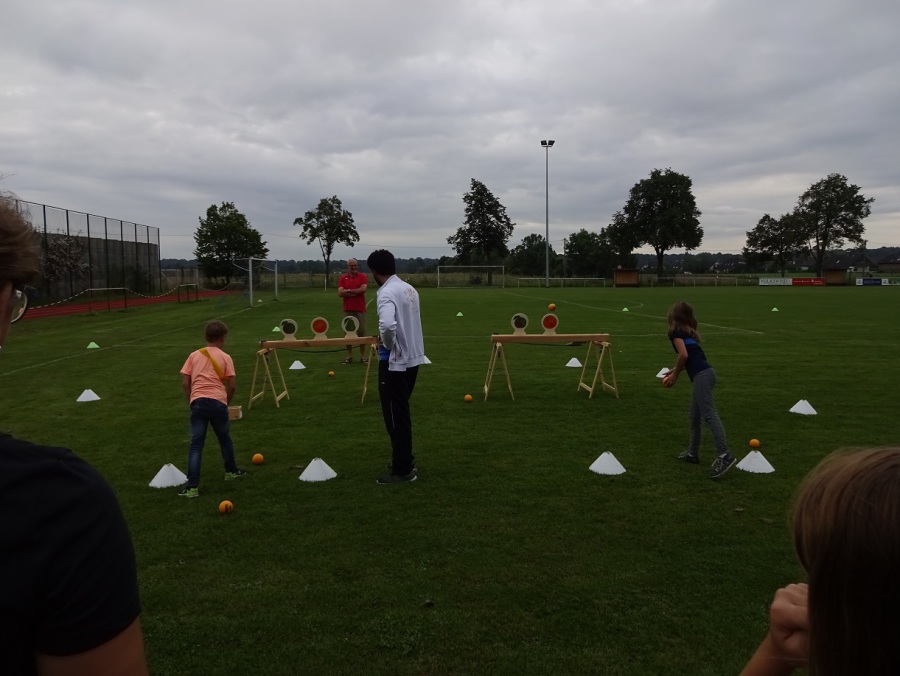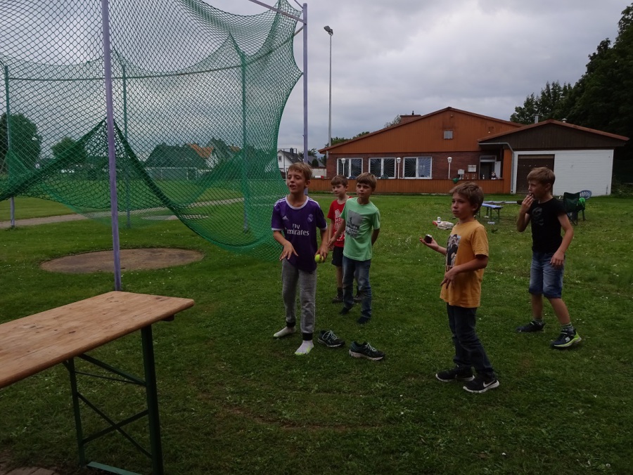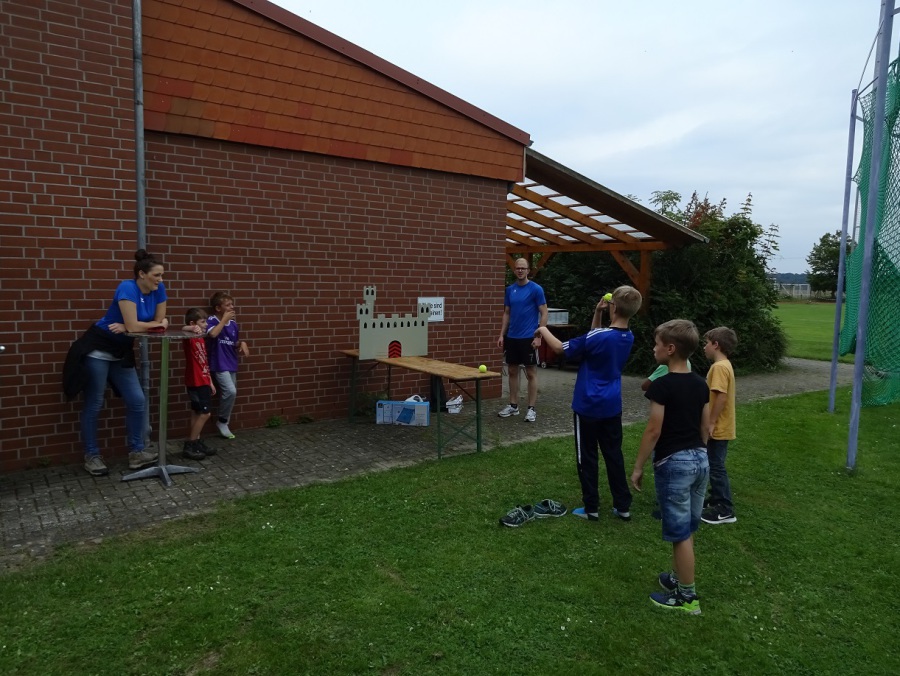 Kaum waren die letzten Krümel verputzt, wurde auch schon weiter getobt. Beim Völkerball auf dem Sportplatz gesellte sich dann auch der ein oder andere „Große“ zu den Mannschaften und war von da an ein beliebtes Ziel.
