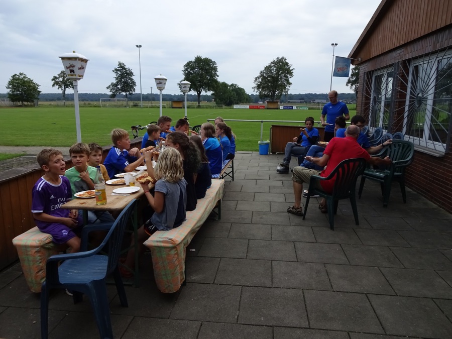 Zur Stärkung gab es anschließend Pizza, die wieder gemeinsam auf der Terrasse verputzt wurde.