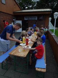 Später gab es dann belegte Brote, die gemeinsam auf der Terrasse des Sportheims gegessen wurden.